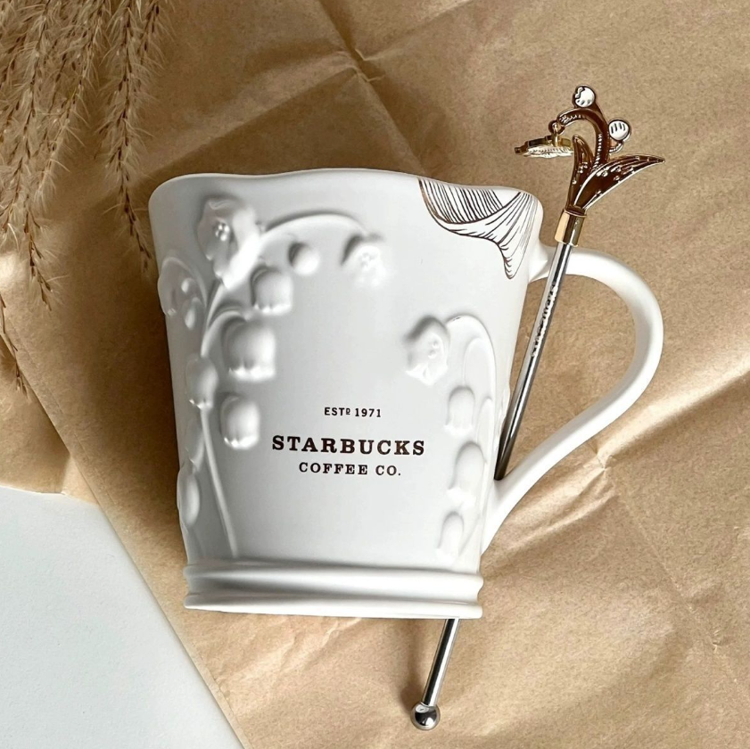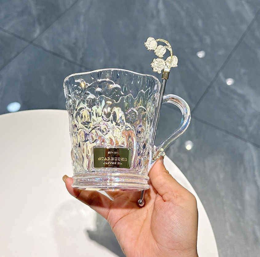 2023 Starbucks Mug Elegant Lily of the Valley Colorful Relief Glass Cup W/ Stick