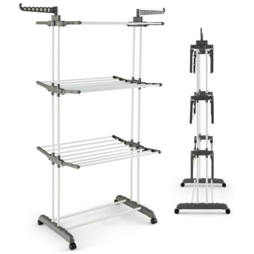 4 Tier Clothes Drying Rack Collapsible Shelves Laundry Hanger W/ Two Side Wings