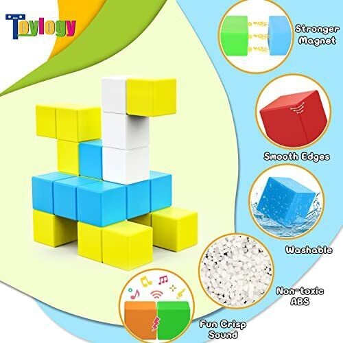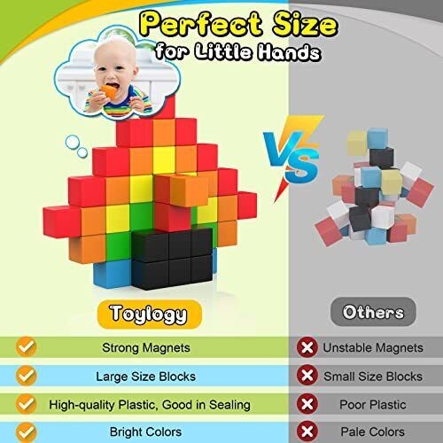 48PCS Magnetic Blocks for Toddlers Toys Large Magnetic Cube Toys for Sensory