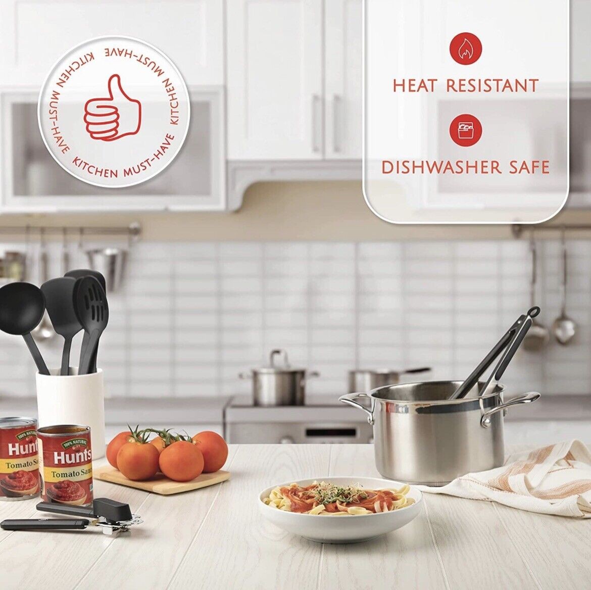 • High Quality Kitchen Tools Designed To Last: No more worries about melting or rusty kitchen utensils. Our high-quality kitchen gadgets are polished with a special oil to prevent it from getting rusty. They are dishwasher safe, light weight and non-stick. Heat resistant is up to 350 F/180°C.