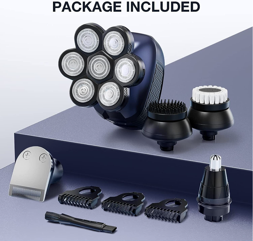 • 【7D Floating Shaving Head】The upgraded version of the 7D floating shaving system is ergonomically designed.The design of 7 cutter heads increases the shaving area and saves shaving time. Our shaver is designed with a non-slip handle for easy gripping, a great choice for your shaved heads.
