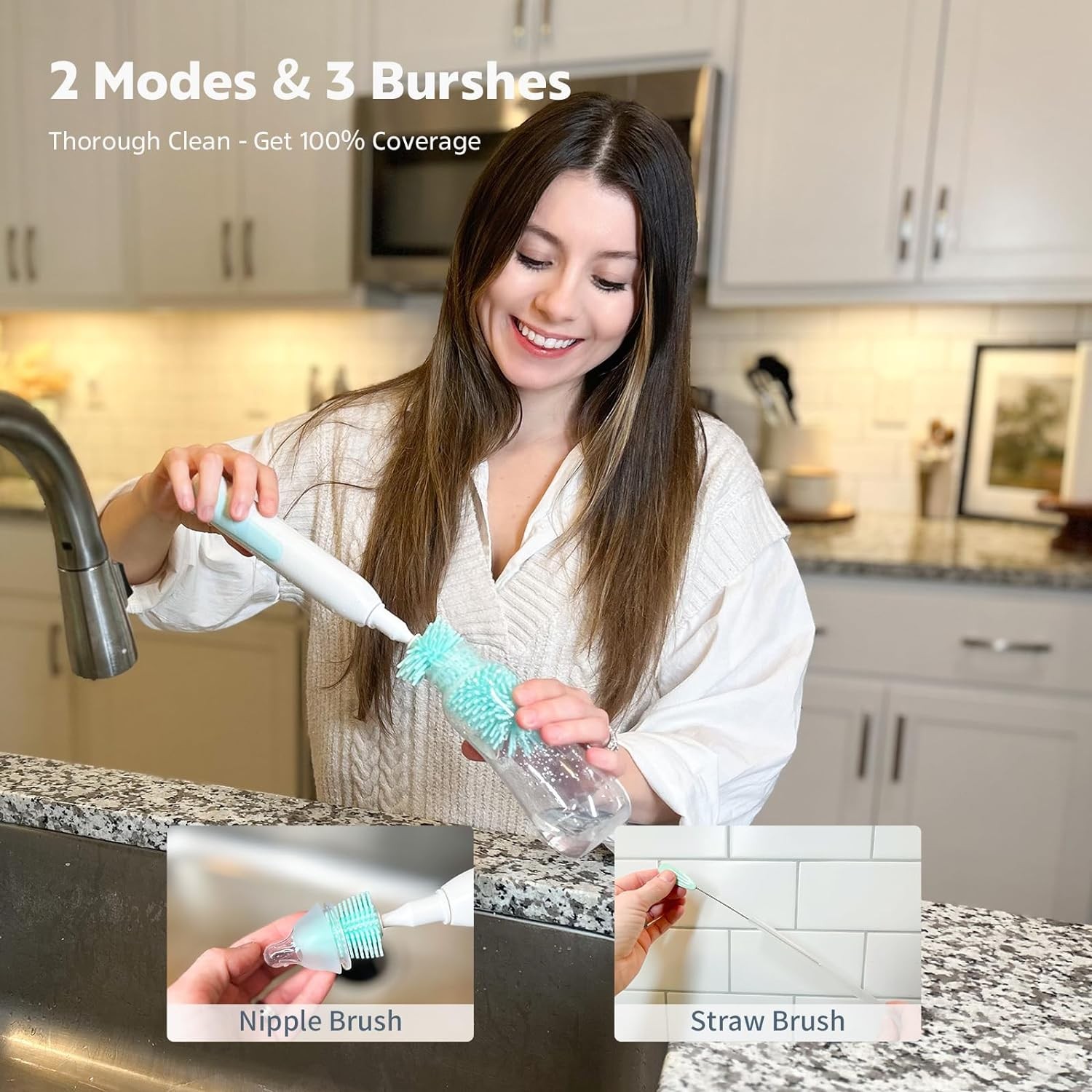 • 【Safely & Durable】: Made from food-grade silicone and ABS, free of BPA components. The silicone brush heads are more durable than plastic or sponge alternatives, ensuring that this electric baby bottle brush will last a long time without needing replacement.
