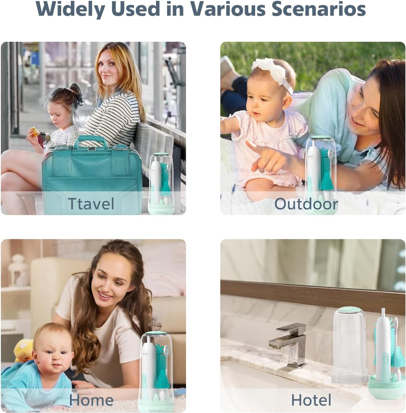 • 【Four Replacement Heads】: MomMed electric baby bottle brush set comes with two different sizes of silicone brush heads, one straw brush, and one electric hybrid head to effectively clean your baby bottles, nipples, cups, pump parts, and even sippy cups or straw cups - even the tightest nooks and crannies.