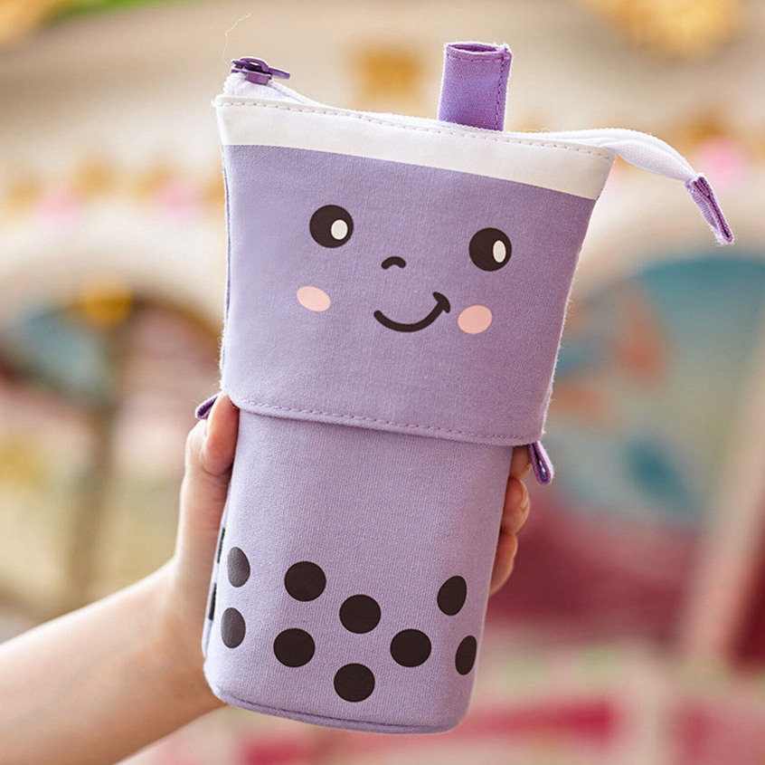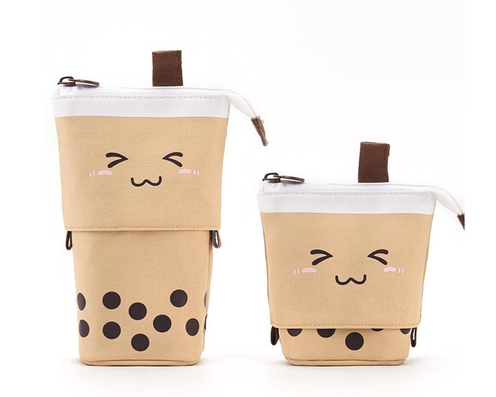 Cute Milk Tea Pen Bag Telescopic Pen Holder Stand-up Stationery Pencil Case