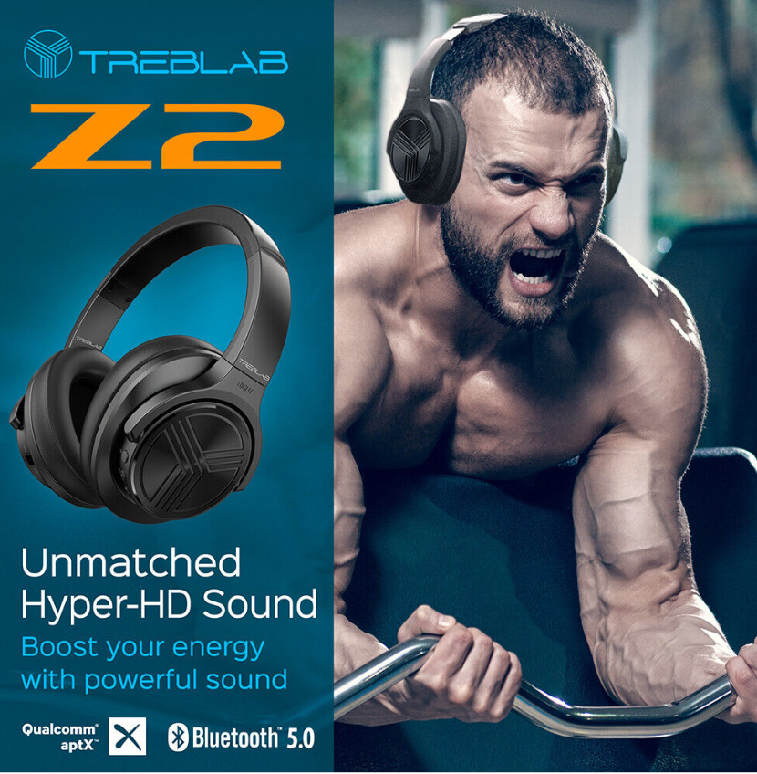 TREBLAB Z2 Bluetooth Active Noise Cancelling HD aptX Wireless Headphones, Travel