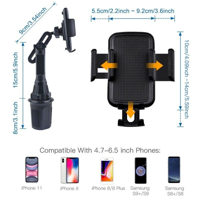 Universal 360° Degree Car Cup Mount Adjustable Holder For iPhone Cell Phone