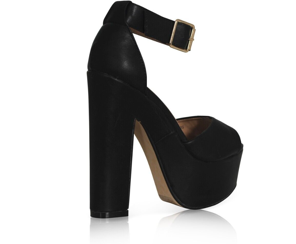 Womens Platform Chunky Heels Sandals Ladies Ankle Buckle Strap Peep Toe Shoes