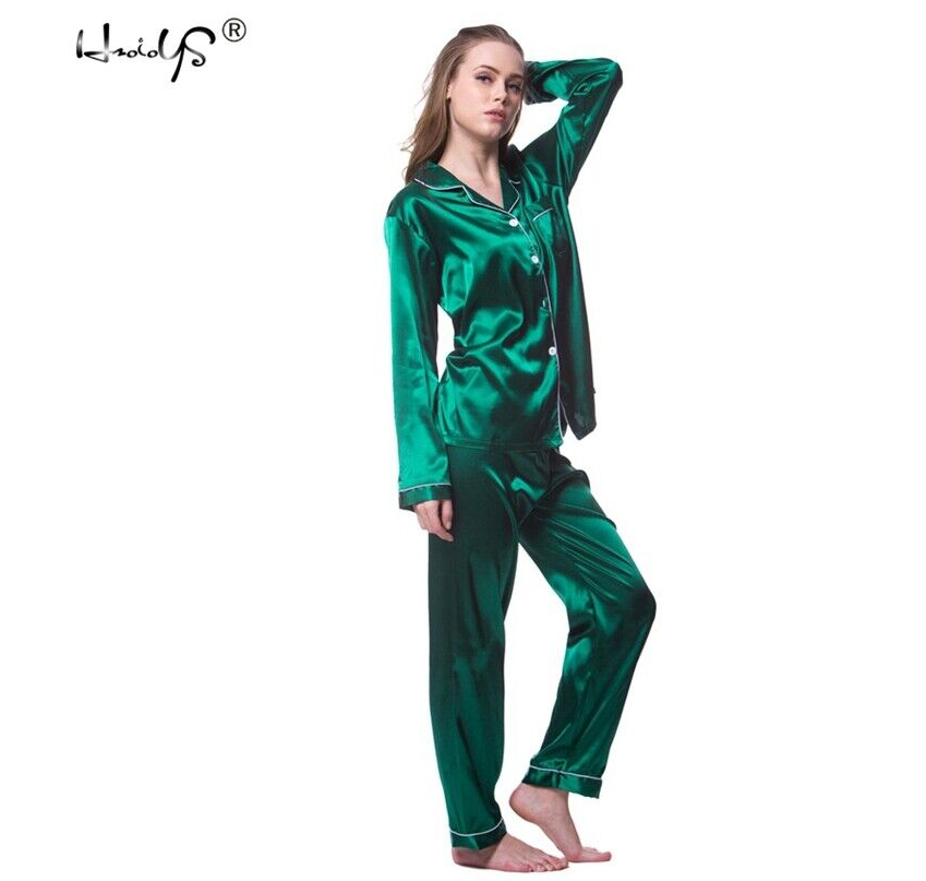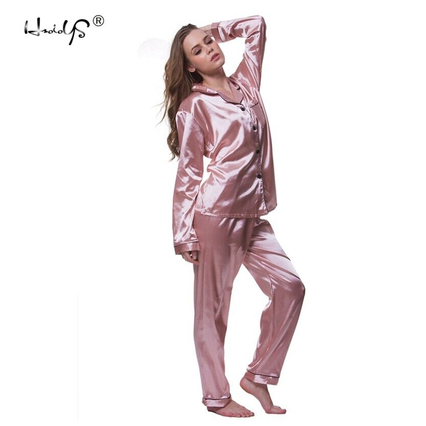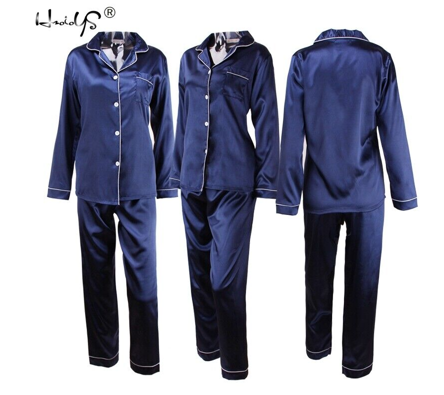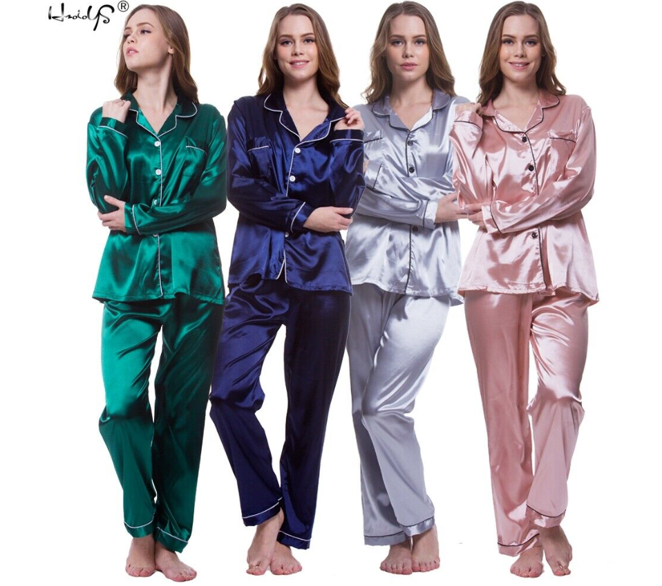 Women's Silk Satin Pajamas Set Long Sleeve Button-Down Sleepwear Nightwear Plus
