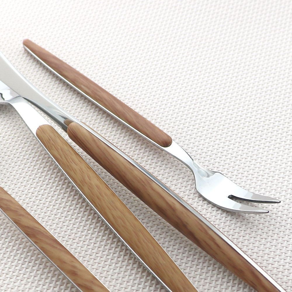 Wooden Handle Cutlery Stainless Steel Knife Fork Spoon Dinnerware Tableware Tool